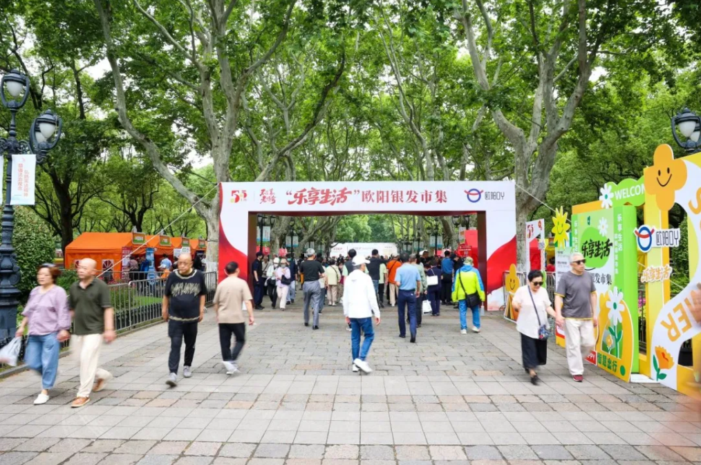 From May 17 to May 19, the “Enjoy Life” Ouyang Silver Economy Market, organized by the Ouyang Road Subdistrict of Hongkou District, was successfully held at the South Square of Lu Xun Park in Shanghai. The event attracted the attention of government leaders, industry experts, and local residents. Distinguished guests, including Zhang Wei, Deputy District Mayor of Hongkou District; Shen Jingwei, Director of the District Civil Affairs Bureau; Wu Zhiyong, Director of the District Commerce Commission; and Jin Binbin, Director of the Civil Affairs Bureau of Huzhou City, attended the opening to witness Ouyang Road Subdistrict’s new initiatives in enhancing community well-being and promoting the development of the silver economy.