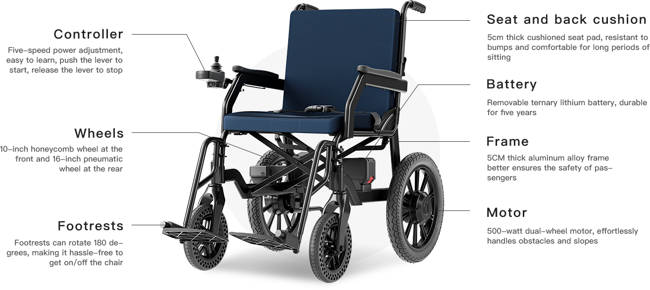 Long battery life, strong power, good on all terrain. Humanized design, easy to fold, easy to carry, worry-free travel. Intelligent control, safe and comfortable, making every trip easy and enjoyable.
