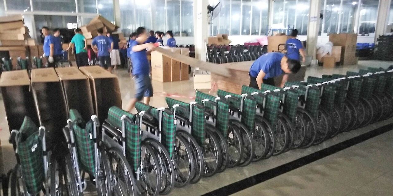 6月18日一早,手機(jī)上顯示出的全部都是關(guān)于宜賓地震的消息,當(dāng)天早會(huì)互邦智能康復(fù)設(shè)備股份有限公司董事長賀先生,立馬下達(dá)緊急生產(chǎn)任務(wù),當(dāng)即決定為宜賓捐贈(zèng)100臺(tái)手動(dòng)輪椅車以及100支拐杖?;グ顔T工立馬投入準(zhǔn)備輪椅以及拐杖的安裝和運(yùn)輸工作。