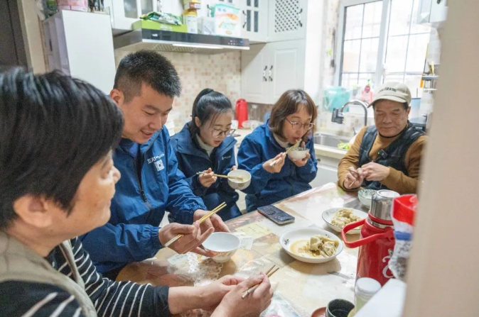 隨著12月上海天氣的轉(zhuǎn)冷,互邦公益團(tuán)隊(duì)決定在拜訪嚴(yán)先生夫婦的同時(shí),為他們做一頓簡(jiǎn)單的午飯,用一頓熱騰騰的餛飩來(lái)表達(dá)對(duì)他們的關(guān)愛(ài)與敬意。于是,團(tuán)隊(duì)駕車前往附近的菜市場(chǎng),采購(gòu)了包餛飩所需的食材,以及大米、食用油、水果等生活用品。當(dāng)互邦公益團(tuán)隊(duì)帶著物資抵達(dá)嚴(yán)先生夫婦家時(shí),嚴(yán)先生已經(jīng)在門口熱情地迎接。大家寒暄后,將物資交給嚴(yán)先生,并開(kāi)始準(zhǔn)備包餛飩。嚴(yán)先生表示,家里的調(diào)料齊全,平時(shí)多是他親自下廚。于是,大家分工合作,準(zhǔn)備食材,攪拌餡料,包制餛飩。