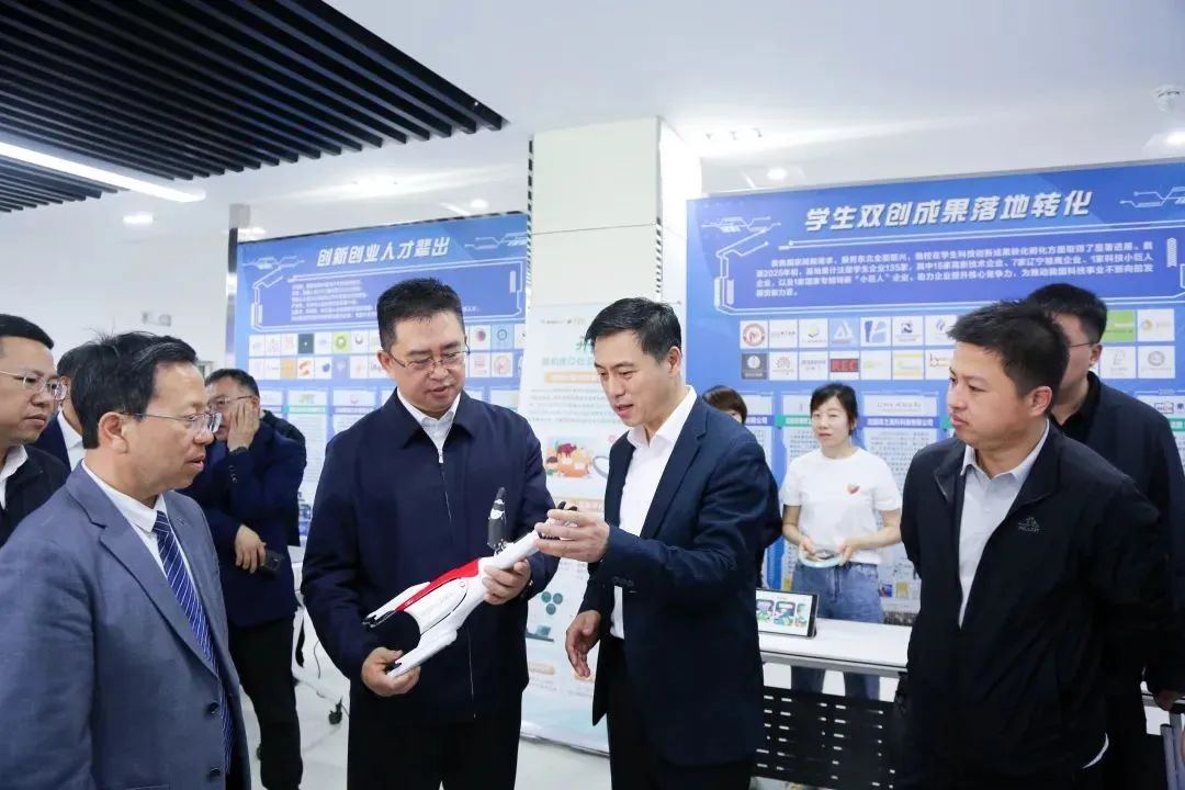 ▲領(lǐng)導(dǎo)現(xiàn)場(chǎng)體驗(yàn)助殘科技項(xiàng)目產(chǎn)品
